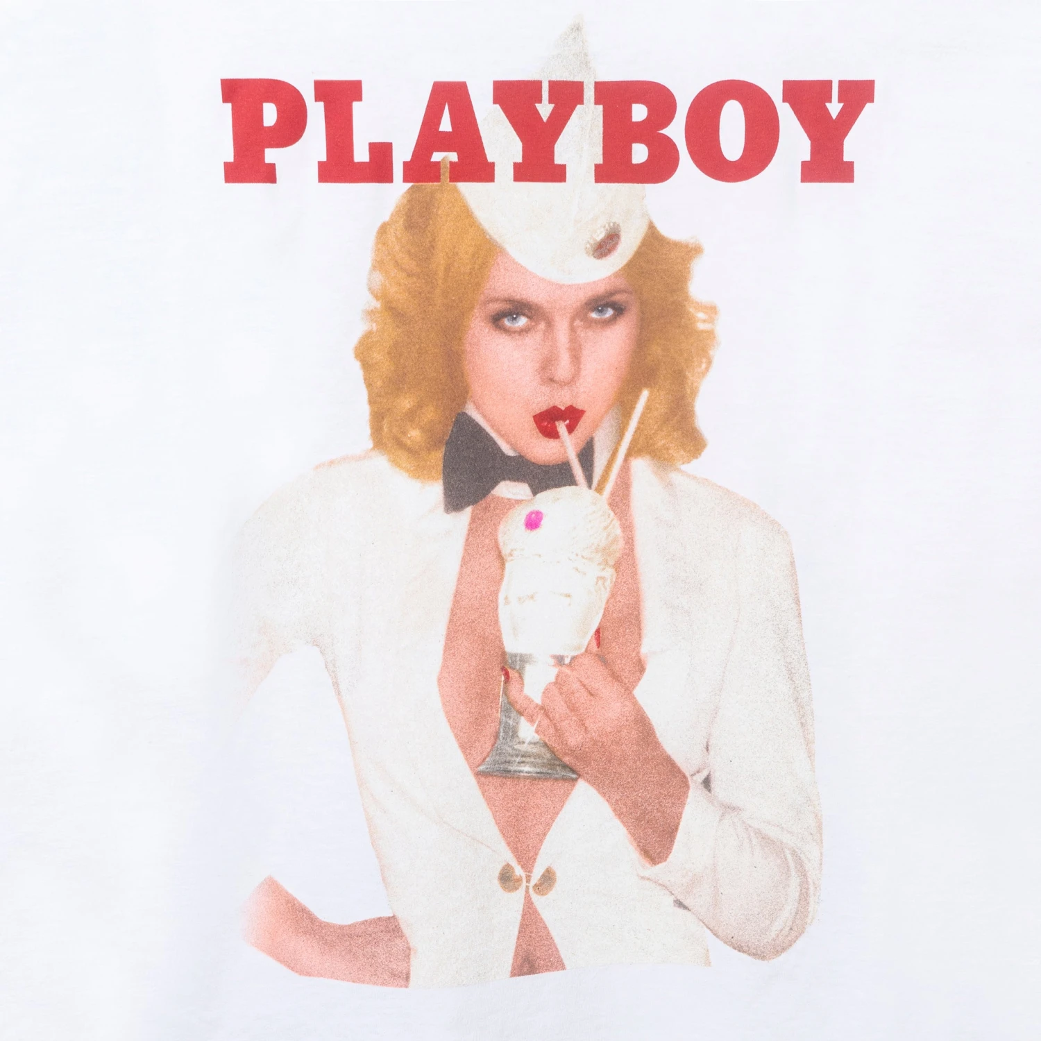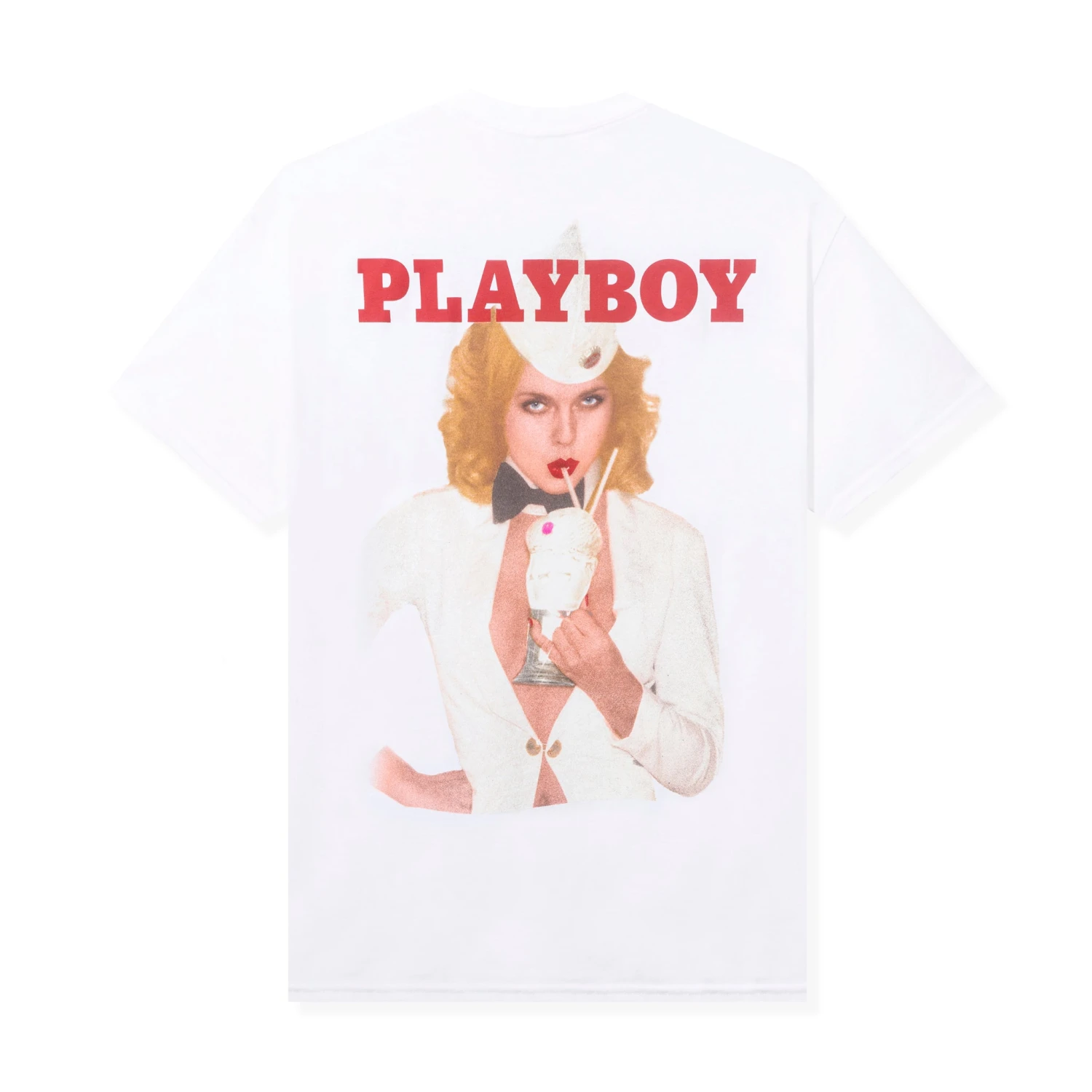 A trip down memory lane, this shirt doesn’t just showcase fashion; it’s a flashback to a defining era. The back showcases an oversized graphic of Lillian Müller’s May 1977 cover for PLAYBOY Magazine, making it a wearable piece of history.