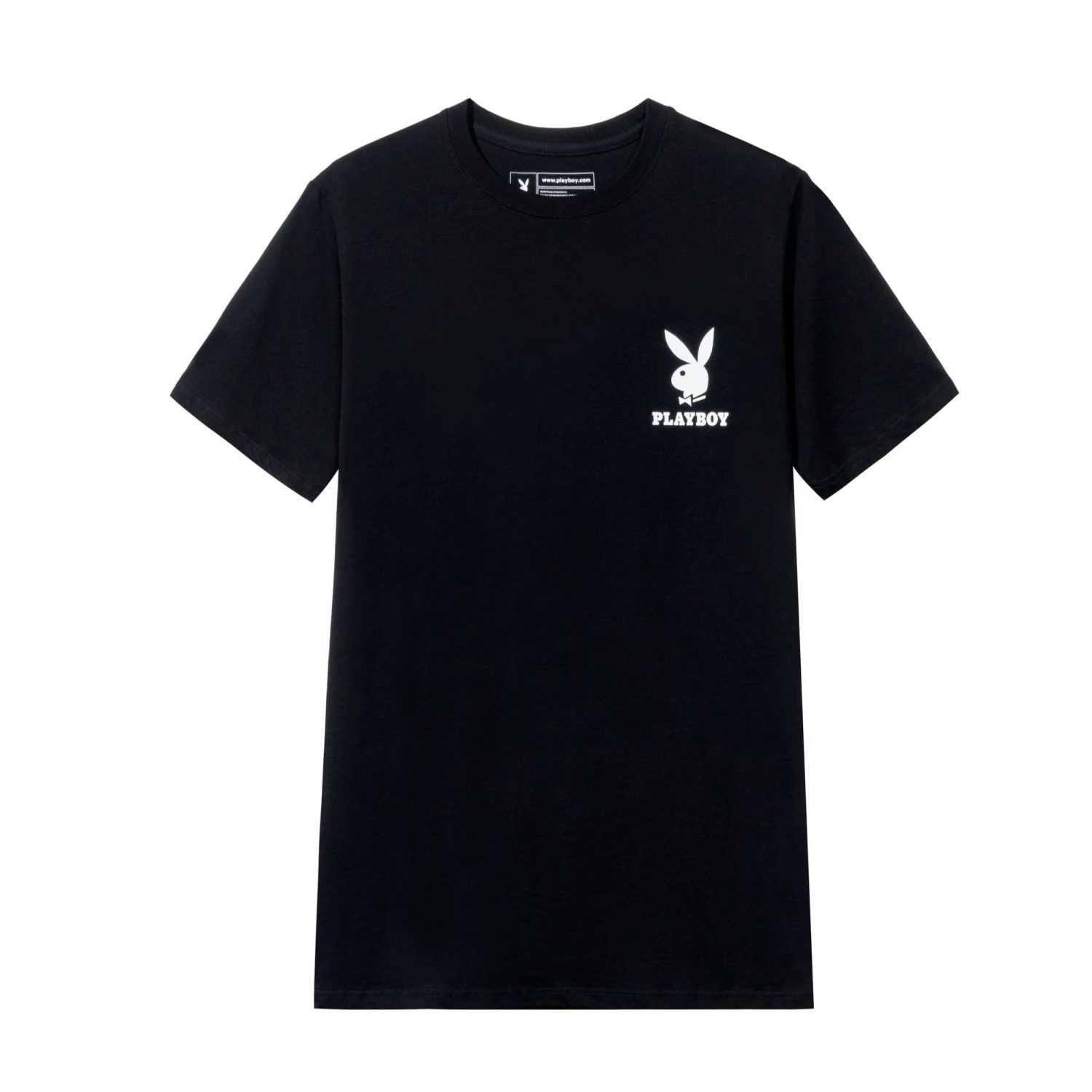 All wardrobes need a basic black t-shirt. So Playboy has given this classic look a major upgrade. Introducing the Rabbit Head Black and White tee. Simplicity is key and we started with comfort. Made of velvety, 100% cotton this slips on as easily as a body hug. Now get ready for this classic t-shirt’s iconic style. Our Playboy Bunny symbol has got you covered on both sides of this short-sleeved shirt. A rabbit head stamps the front while a large one blankets the back. Our tee gives you twice the style in a single look.