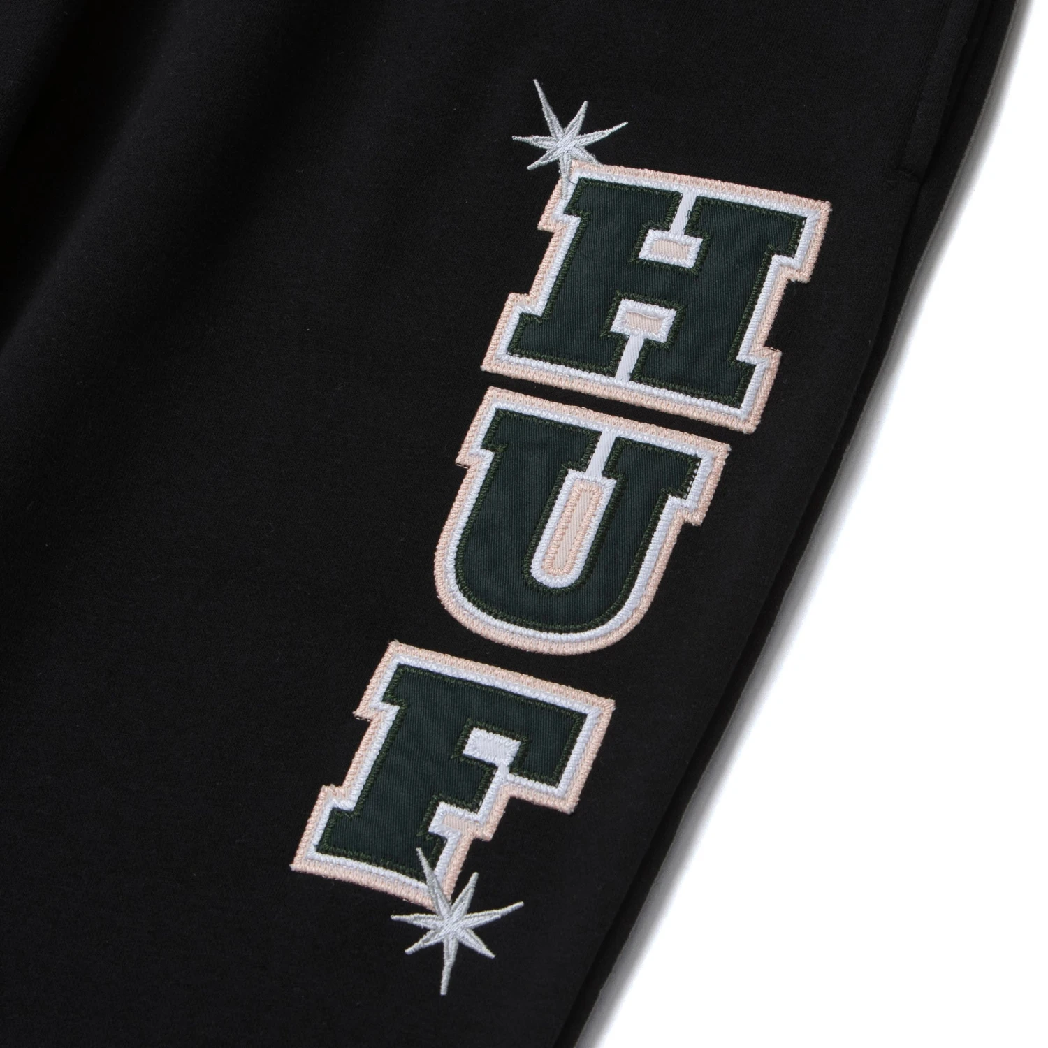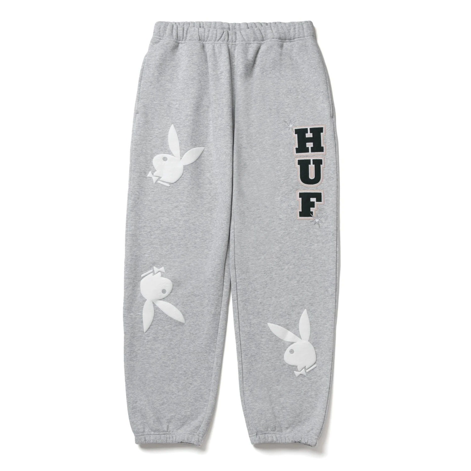Iconic Branding: The iconic Playboy Rabbit Head logo is puff-printed on both legs, adding a timeless touch of style. A tackle twill HUF logo at the left thigh showcases the stylish branding of both iconic brands.