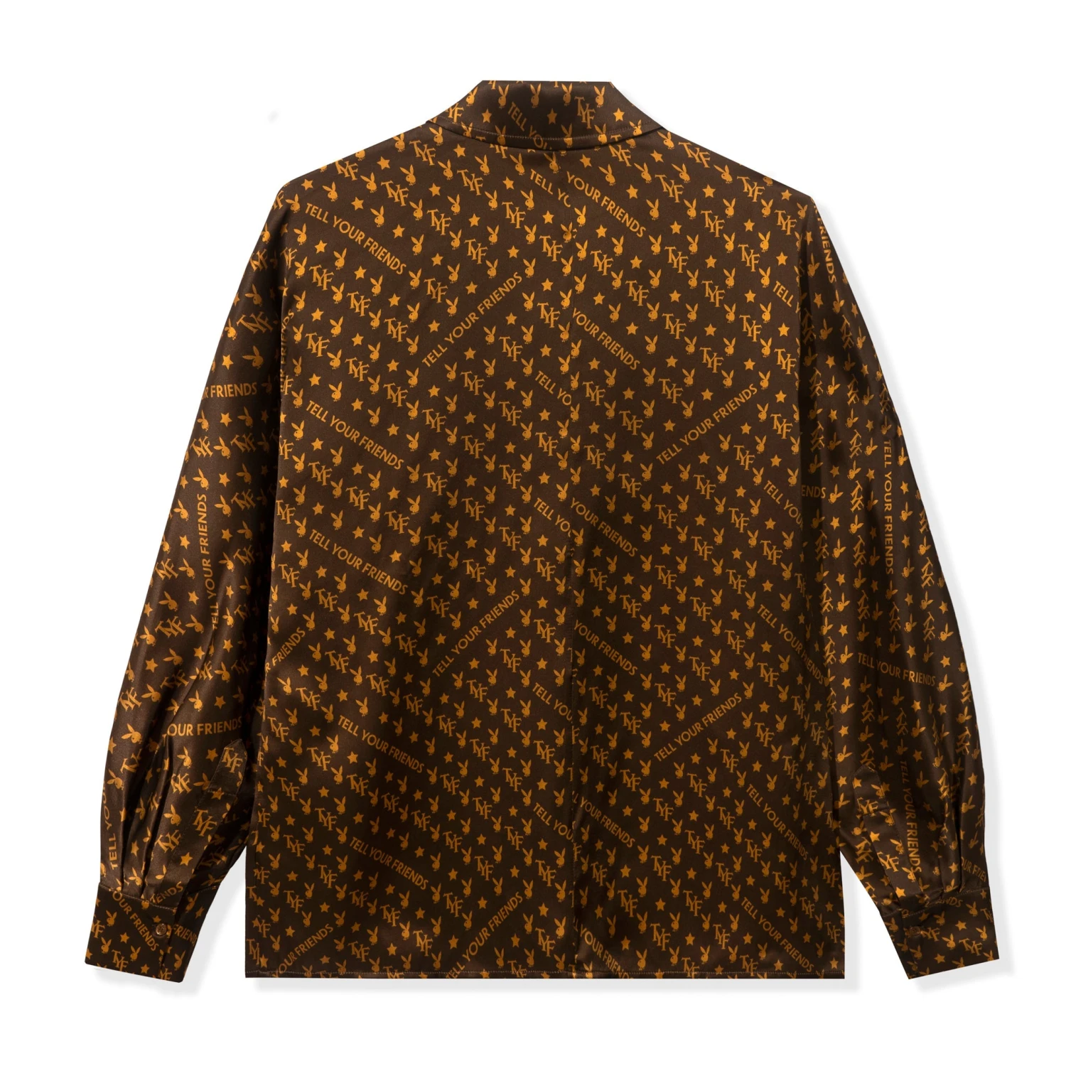 Indulge in the lap of luxury with our Playboy x Revolve Mini Bunny Silk Shirt. A collaboration with Revolve, this satin Dolman shirt is more than just a fashion statement—it’s an experience. Featuring an allover logo print and the iconic Rabbit Head, this shirt promises sweet dreams and even sweeter style. Made from 100% silk and detailed with a partial front button closure, ruched sleeves, and buttoned cuffs, every aspect of this shirt is designed for your comfort and class. Its satin fabric adds a lavish touch, making it a must-have piece for those who appreciate the finer things in life. Please note that it’s hand wash only.
