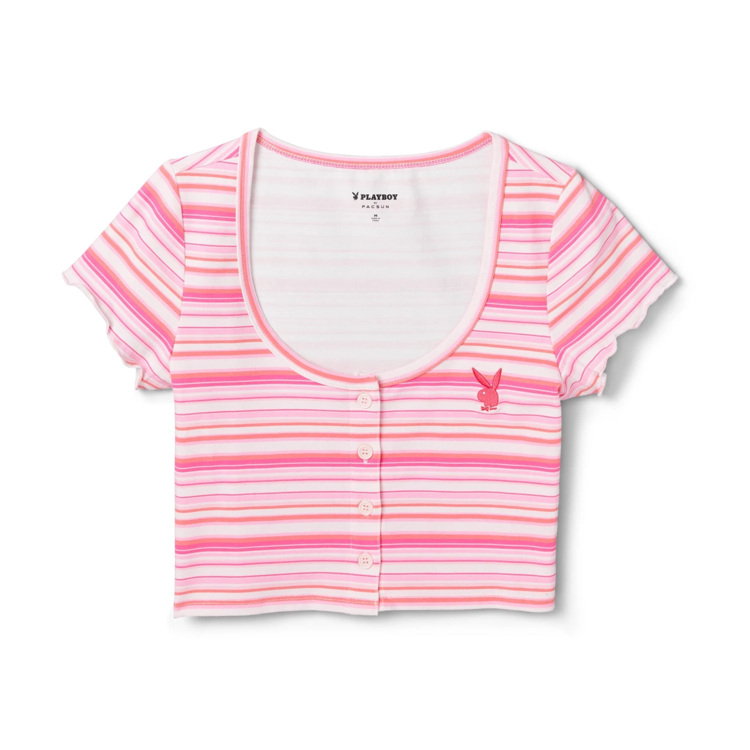Make waves in a tee that’s not just a style, but a mood. A magnetic mood that’s impossible to ignore. Click now to snag this chic stripe tee from Playboy.