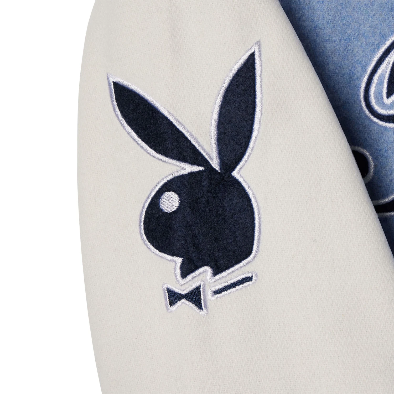 - Playboy Branding: Embroidery and patches that speak volumes about your taste in women’s letterman jackets.