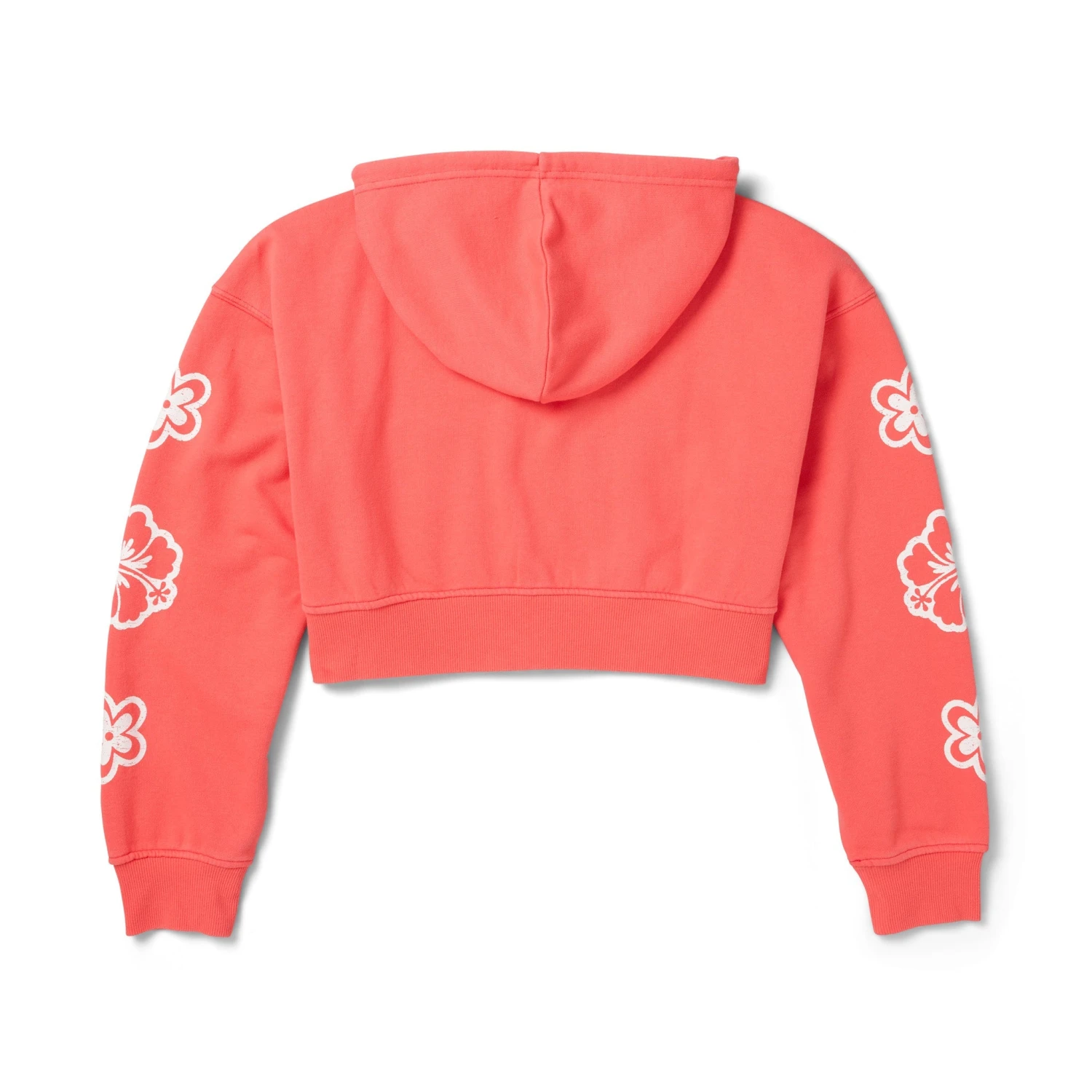 This ultra-cool cropped hoodie features a full zipper front closure, a drawstring hood, long sleeves, side pockets, custom Playboy graphics throughout, and ribbed cuffs and hem.